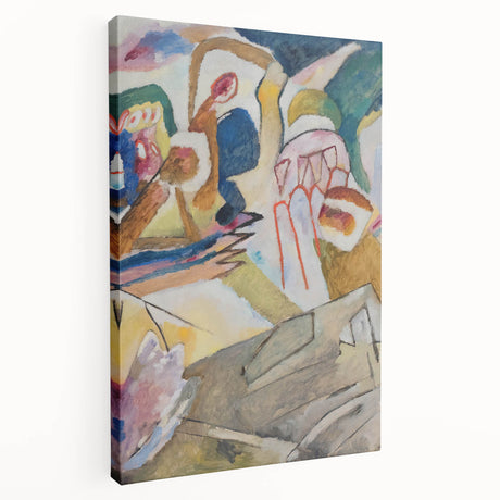 • Stretched canvas artwork showcasing a vibrant abstract design in bold colors, perfect for modern home decor, viewed from the side to highlight its depth and texture.