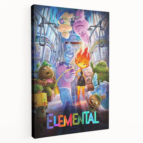 • Large stretched canvas featuring a vibrant illustration of assorted fruits and vegetables, ideal for kitchen wall art.