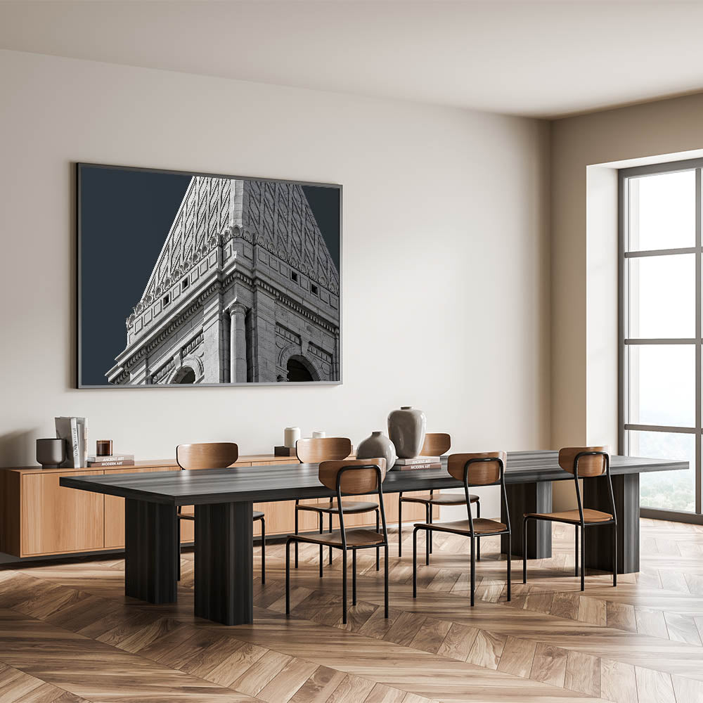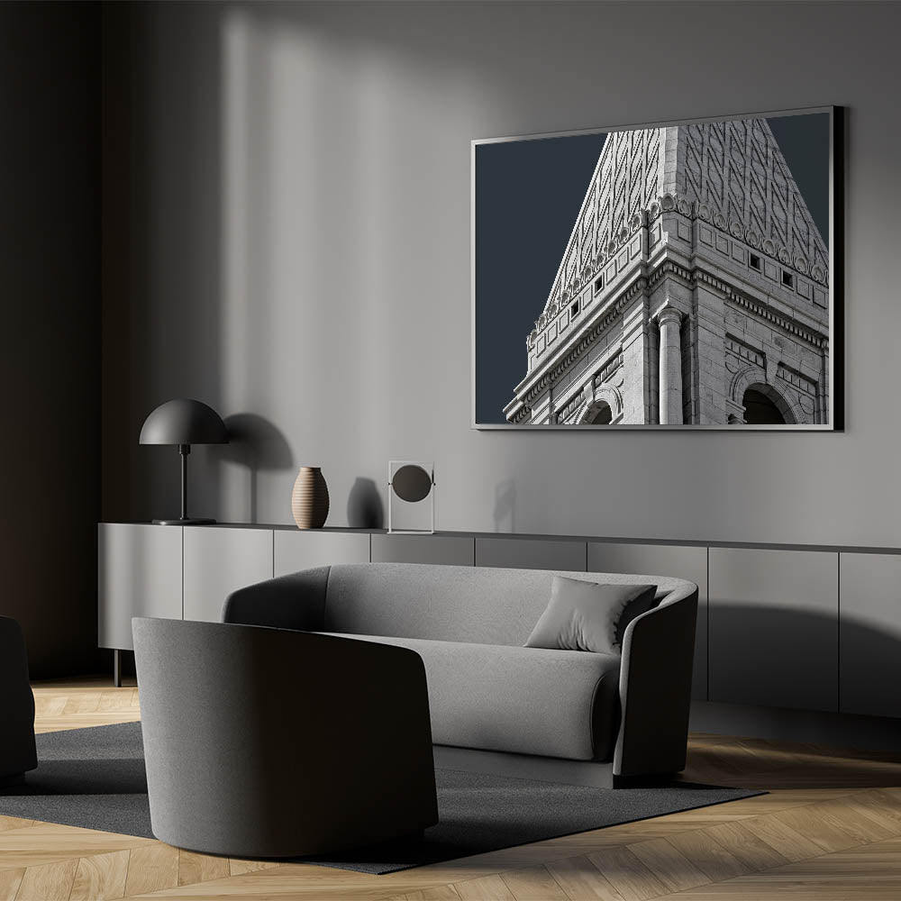 Celebrate the intricate craftsmanship of Connecticut’s historic architecture with this stunning architectural detail photograph. This Connecticut wall art captures the elegance of a historic building’s façade, showcasing the fine details and timeless design of its columns and intricate patterns. Ideal for architecture lovers and those looking for a sophisticated touch to their decor, this print adds a sense of refinement and classical beauty to any room.
