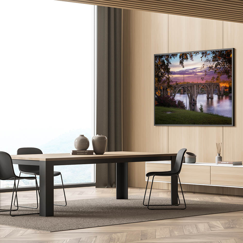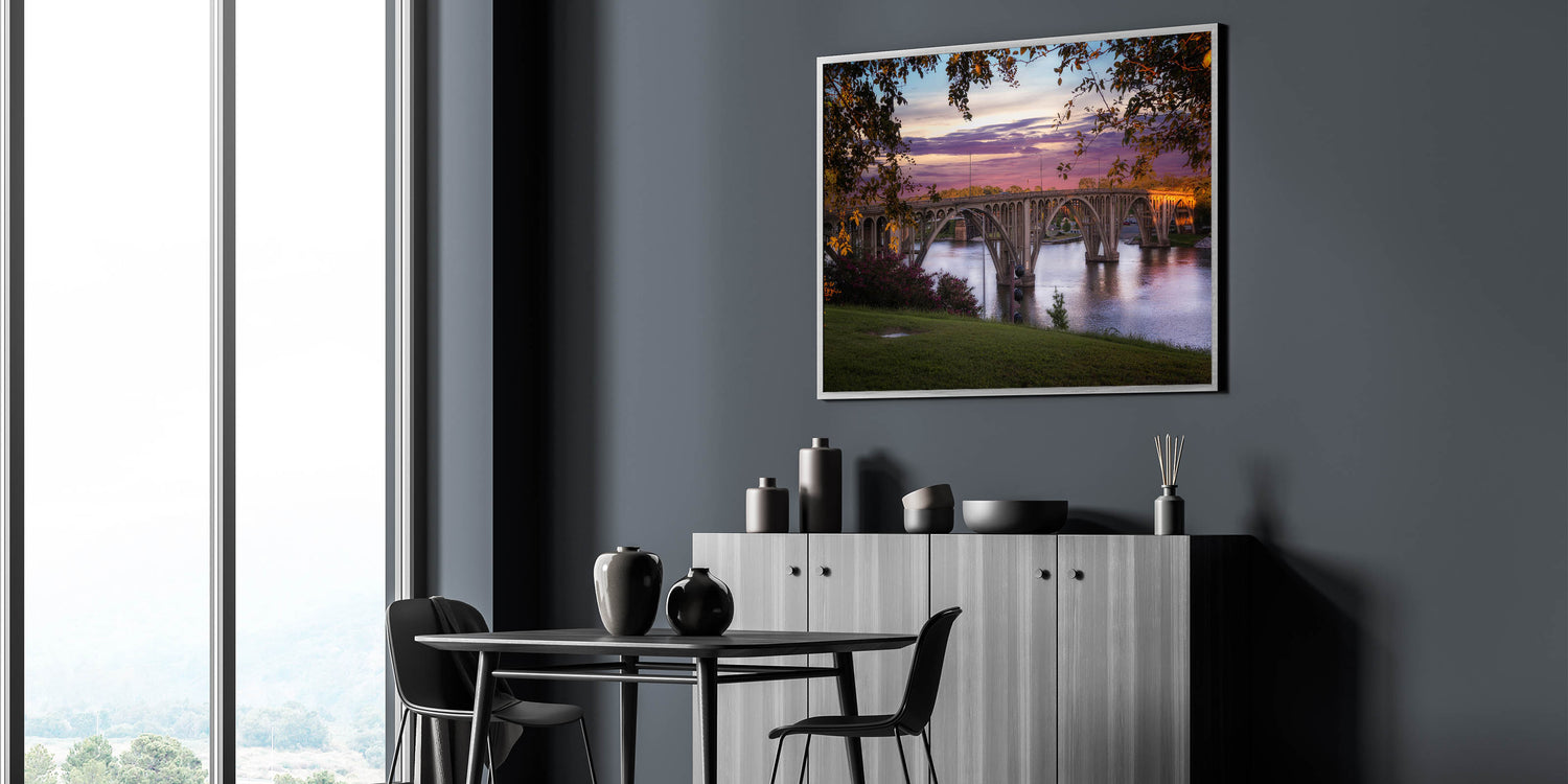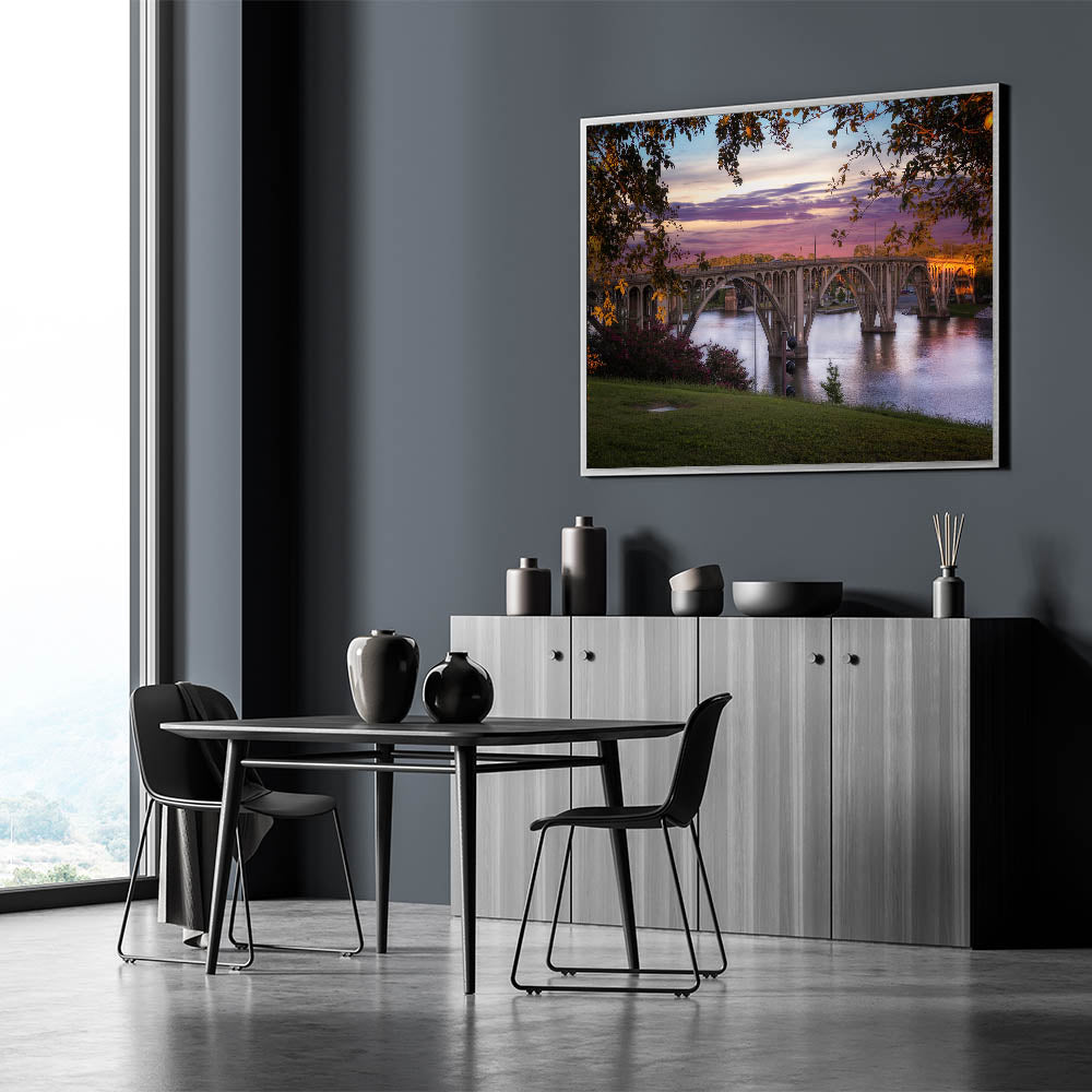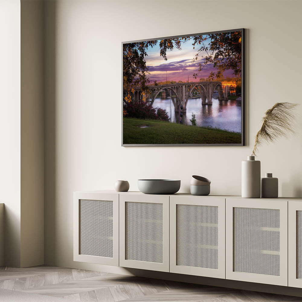 Add a touch of Southern charm to your space with this breathtaking Alabama scenery wall art. Featuring a stunning bridge bathed in the warm glow of a Southern sunset, this piece encapsulates the natural beauty and architectural elegance of Alabama. The perfect decor for lovers of Alabama landscape photography, this artwork offers a timeless representation of Alabama’s unique and captivating landscapes.
