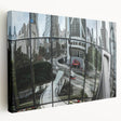 Explore the complexity of the city through this captivating piece of cityscape photography prints. A distorted glass façade reflects a vibrant city skyline, blending multiple layers of architecture, motion, and mirrored reality. This dynamic artwork captures the energy of a bustling metropolis in a unique and artistic way.