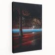 Bring motion, mood, and modern edge to your space with this contemporary city wall decor. Capturing the dynamic energy of nighttime traffic, this striking photograph features glowing red and blue light trails rushing through a tree-lined street. The reflections on wet pavement, the rich shadowy background, and the vivid contrast in color give this piece a dramatic and artistic flair.