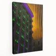 Capture the heartbeat of the city with this urban scenery wall art, a powerful blend of light, shadow, and architectural form. This striking piece brings together the raw energy of downtown life with the sophistication of contemporary design. Featuring glowing green windows, deep shadows, and a dramatic golden backdrop, it’s an expressive example of modern urban landscape art.