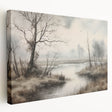 Vintage Landscape Art - Misty River with Bare Trees in Soft Hues