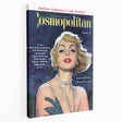 Bring a piece of 1950s glamour into your home with this antique magazine cover art that showcases the timeless appeal of Cosmopolitan.