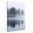 Immerse yourself in the tranquility of nature with this breathtaking fine art photography acrylic print. Featuring a serene lake with tall pine trees standing in perfect reflection, this misty forest scene evokes a deep sense of calm and stillness.