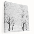 Embrace the serene beauty of winter with this urban landscape photography decor piece. Featuring a peaceful snow-covered park with delicate branches wrapped in fresh white snow, this contemporary city wall art captures the elegance and tranquility of the season. The monochromatic palette and soft textures make this artwork a perfect addition to modern and minimalist interiors.