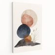 Add a striking piece of retro flair to your home with this Mid-Century Modern abstract print. Featuring a unique combination of geometric shapes in deep blue, warm peach, and mustard yellow tones, this minimalist art piece blends modern design with a vintage touch. The organic shapes and subtle earthy palette make it ideal for any space, from living rooms to offices, adding a calming and sophisticated atmosphere.