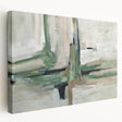 Elevate your interior with the grounded elegance of this geometric abstract art print. Featuring calming hues of sage green, ivory, beige, and charcoal black, this design creates a clean, minimalist composition anchored by layered brush textures and intersecting lines. The serene color palette, paired with the textural depth of an oil painting technique, brings structure and softness into perfect harmony.
