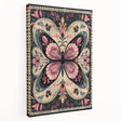 Bring a touch of whimsy and elegance to your home with this stunning butterfly-themed Scandinavian wall art. The design features intricate floral patterns surrounding a beautifully detailed butterfly, capturing the essence of Nordic minimalism with an artistic flair. With soft pinks, deep blacks, and rich teal tones, this artwork blends traditional Scandinavian style with a modern touch, making it a standout piece for any room.