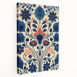 Bring a touch of elegance to your home with this Scandinavian wall art, featuring a captivating floral pattern in shades of deep blue and soft coral. This Nordic-inspired design showcases intricate flower and leaf details, blending traditional Scandinavian elements with modern sophistication. The harmonious color palette of blue, teal, and coral adds both vibrancy and calmness to any space, making it perfect for contemporary or traditional decor.