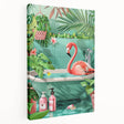 Turn your bathroom into a tropical paradise with this stunning Tropical Flamingo Bathroom Wall Art. Featuring a graceful flamingo lounging in a colorful, lush bathroom setting, this artwork bursts with vibrant greens, pinks, and aqua tones. Perfect for coastal-themed decor, it infuses your space with energy, relaxation, and a hint of exotic charm.